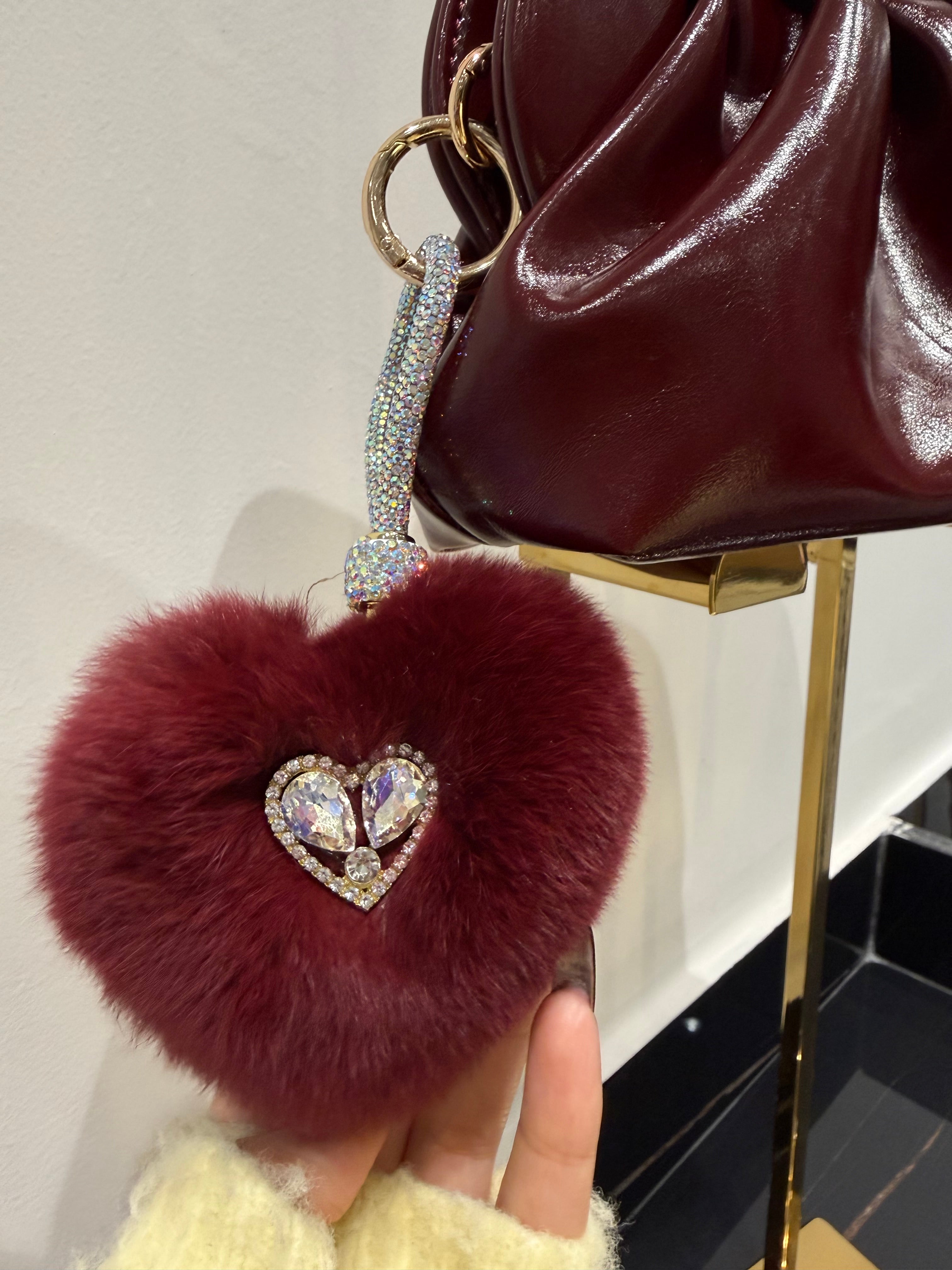Charm / portachiavi ponpon cuore bordeaux